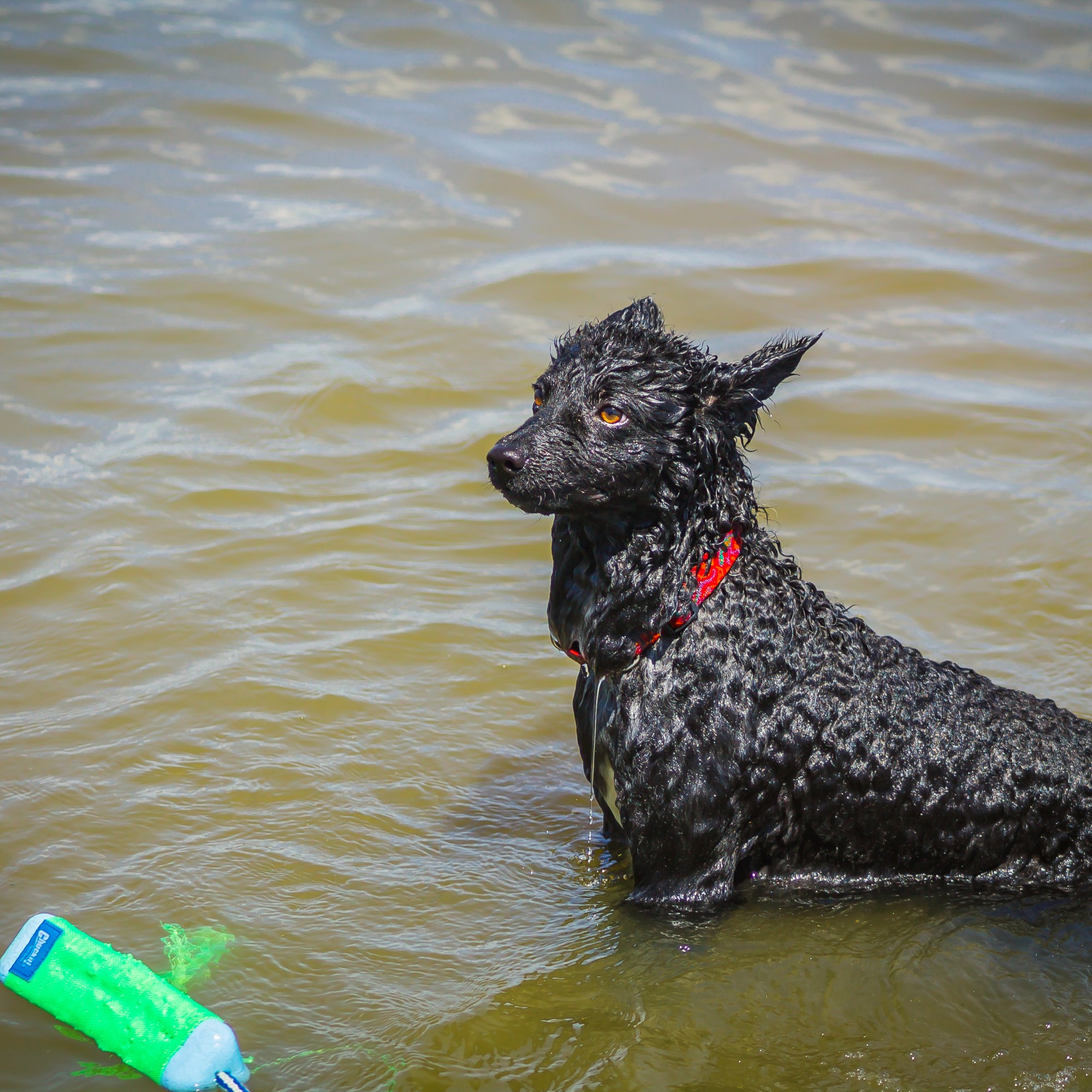 Sas is a more reserved Mudi, but only until the ball comes out! She is a toy FREAK and loves swimming more than life itself. Sassy will literally do anything for a ball, but she is completely non aggressive/possessive with other dogs which we love. She began her official dock diving career in May 2021 and earned her first diving title – Dock Master – in June. Sassy has an Intermediate Trick Dog title, as well. Sas has been introduced to stock and we expect her to be a big help around the farm.