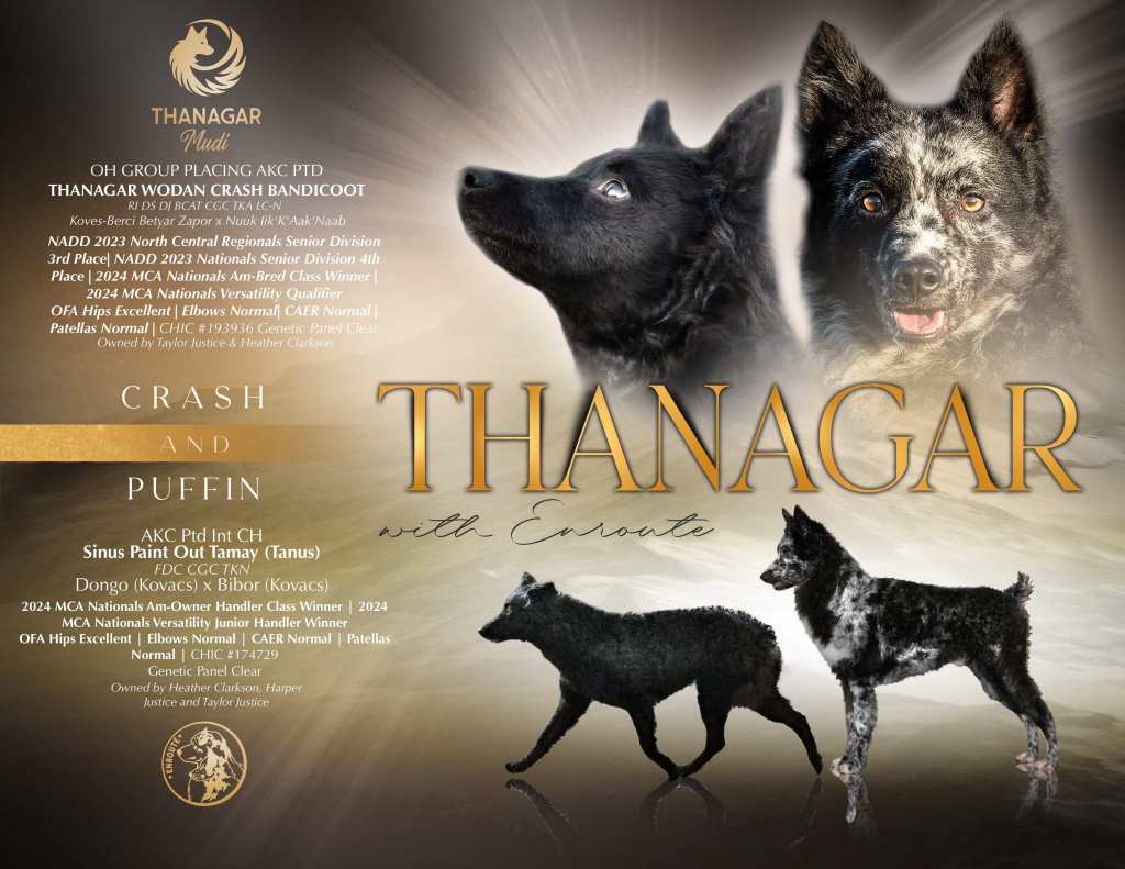 This is a selective and purposeful linebreeding on Puffin and Crash’s maternal pedigree. Puffin is a beautiful, happy, social Mudi girl who excels with her Junior Handler. Her previous litters have produced fantastic family pets, disc dogs, herding dogs, and show prospects. Crash is extremely versatile and titled in multiple sports already, and he is very social and stable. Both these dogs have OFA CHIC numbers (including excellent hips), and clear genetic panels. The genetic COI is 14%.
