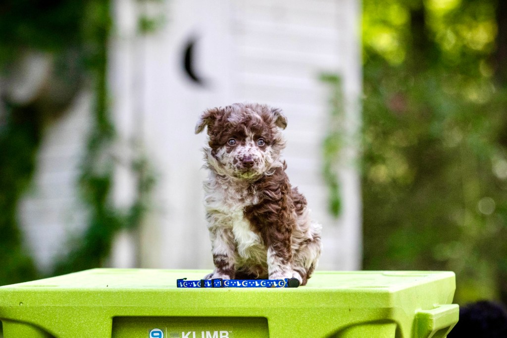 Bourbon is our colorful kid in the bunch – fitting his name aptly! This sweet boy is sensitive and affectionate, and absolutely adores his (human) mom. They have already learned a ton in their first ten months together – agility, barnhunt, disc, conformation, and more! This team has a versatile future ahead of them, and their bond shines in everything they do. Bourbon is co-owned with Denise Welk.